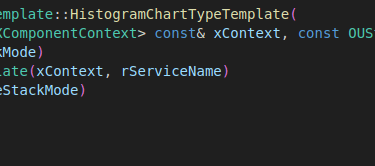 From here we hit our first model, which is chart2/source/model/template/HistogramChartTypeTemplate.cxx HistogramChartTypeTemplate serves as a blueprint or a template for creating histogram charts in LibreOffice. It defines the default properties and behaviours of a histogram chart before any specific instance is created or modified by user interaction.
