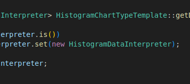 From here onwards, the getDataInterpreter2() method ensures there's an instance of HistogramDataInterpreter available for use with histogram charts. It's the first significant interaction in the histogram creation process because: