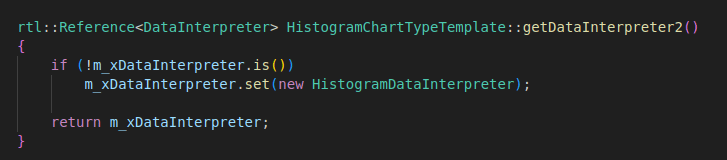 Initialization: If an interpreter hasn't been created yet (!m_xDataInterpreter.is()), it instantiates a new HistogramDataInterpreter.